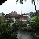 Sunday - I fumbled my way through the hotel breakfast OK. I met up with Chi and we took the train to Kyoto - only about half-an-hour away. (In fact the suburbs of Osaka, Kyoto, Kobe and Nara are pretty-much contiguous.) We were greeted by a big downpour, so we had some lunch and then, after checking with one of the many piccolo-voiced tourist information girls, we took a bus to Ryoanji, a very historic and beautiful temple. The rain resumed its ferocity as we waited for the bus so we sheltered in a souvenir shop (Chi bought some gifts for Michelle), before risking a soaking. Next stop was Kinkaku-ji, another tourist highlight - the golden temple is astonishing when you first see it, and the grounds and gardens were delightful despite the grey weather, one of the highlights being a traditional tea ceremony.
